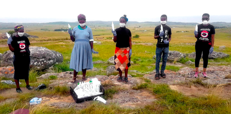 “We strategised and we said maybe one car can come in with a person to come and talk about the virus. We know our people don’t just listen. You have to bring something. We found a sponsor for hand sanitiser. As the Amadiba Crisis Committee we have solidarity all over the country. We said a few of you can come help us.